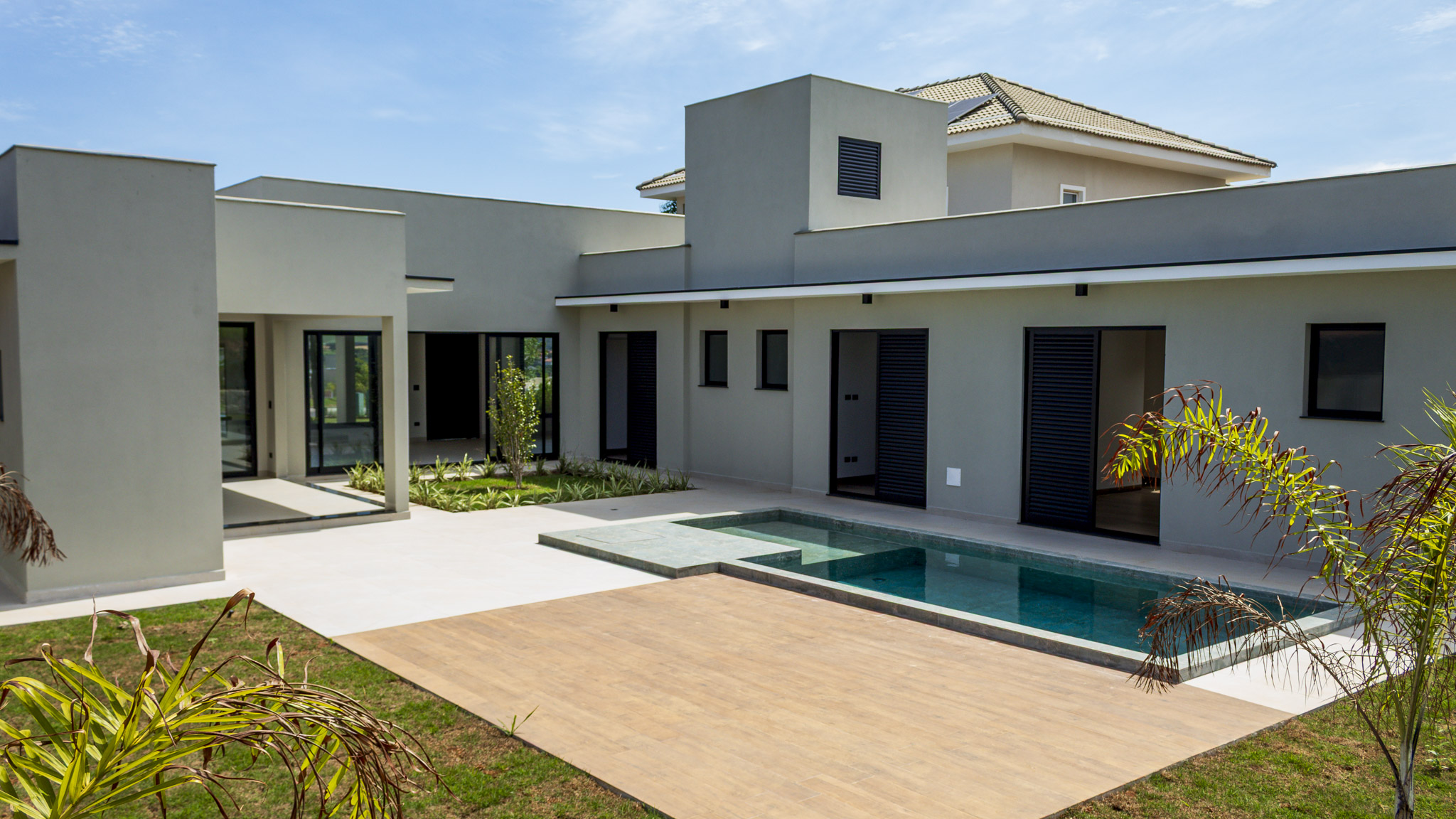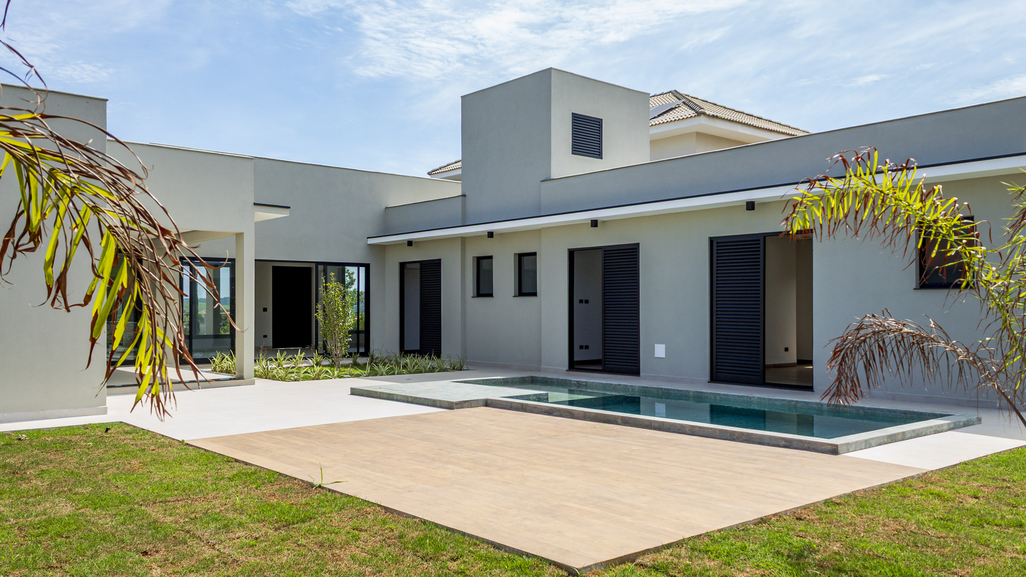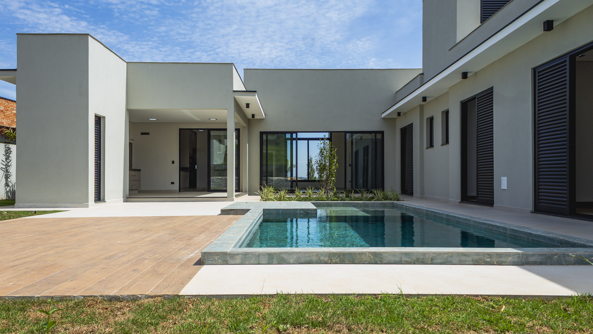 Ao todo são 3 suítes, todas com armários planejados e ar condicionado. Conta ainda com uma bela piscina (já preparada para receber aquecimento) e quintal gramado.