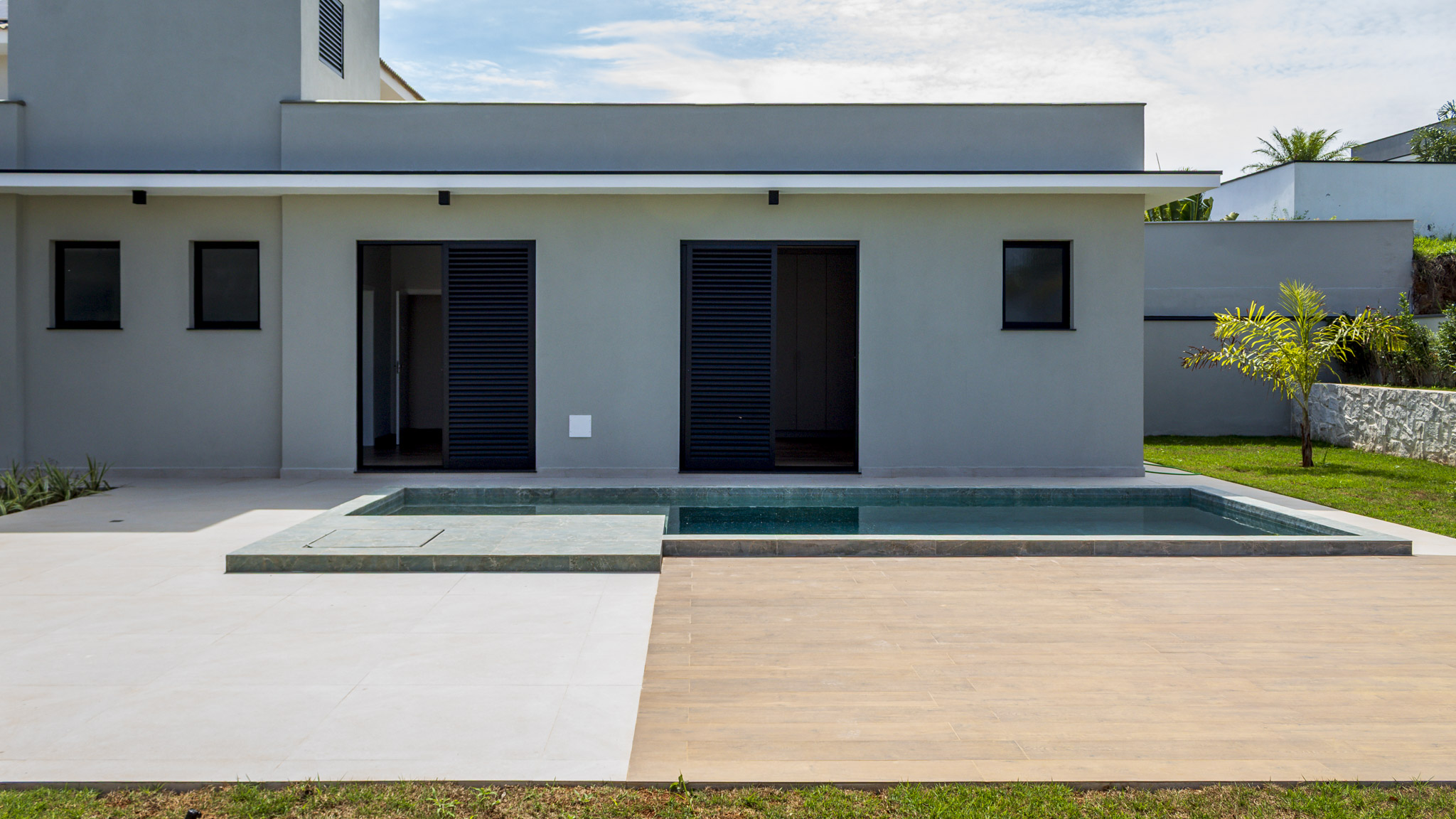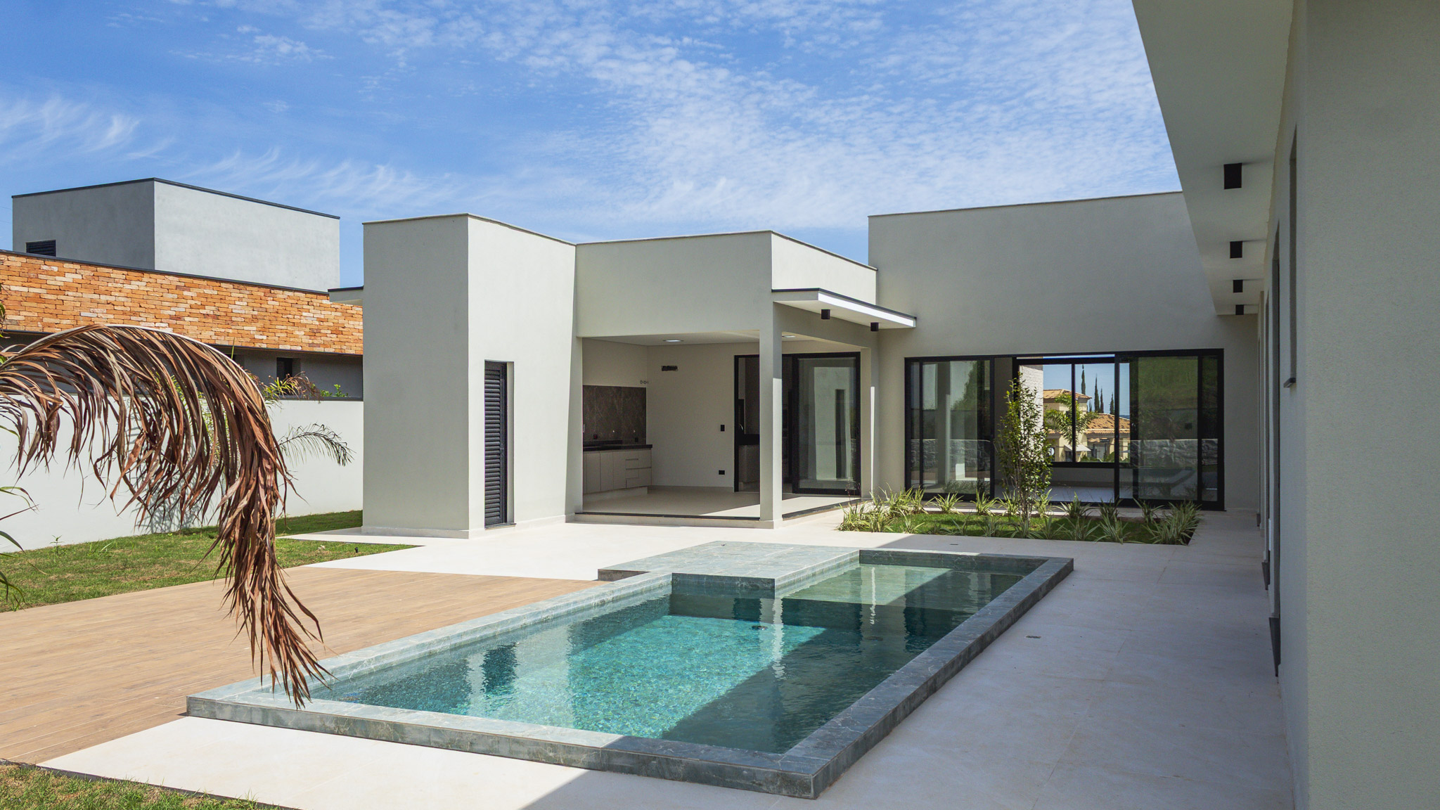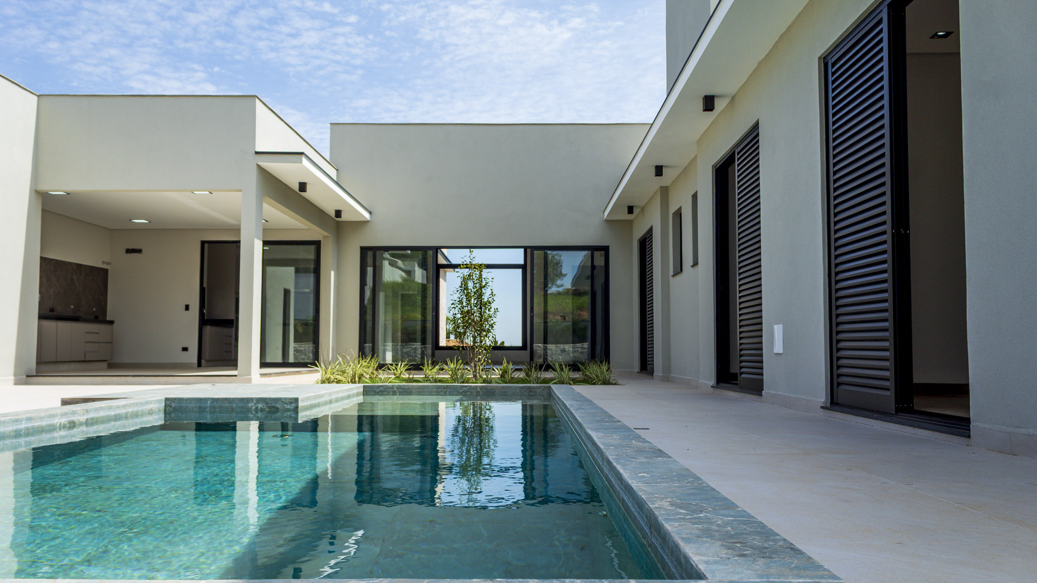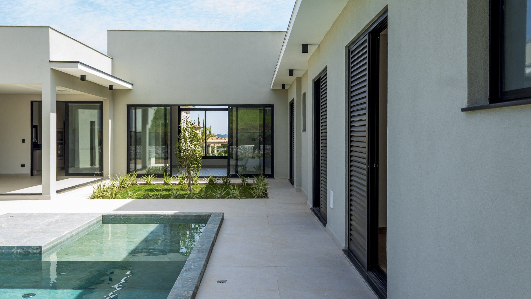 Ao todo são 3 suítes, todas com armários planejados e ar condicionado. Conta ainda com uma bela piscina (já preparada para receber aquecimento) e quintal gramado.