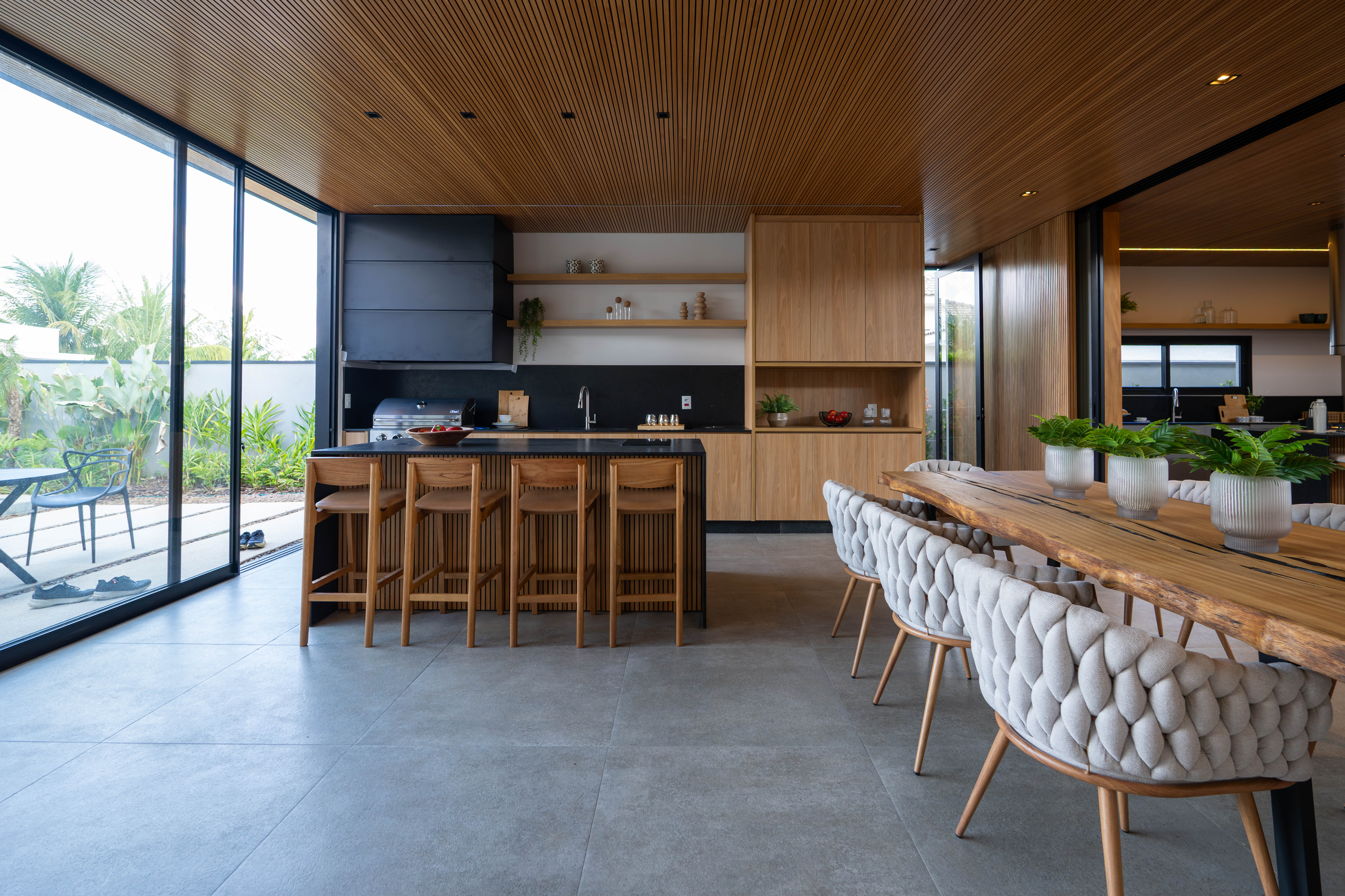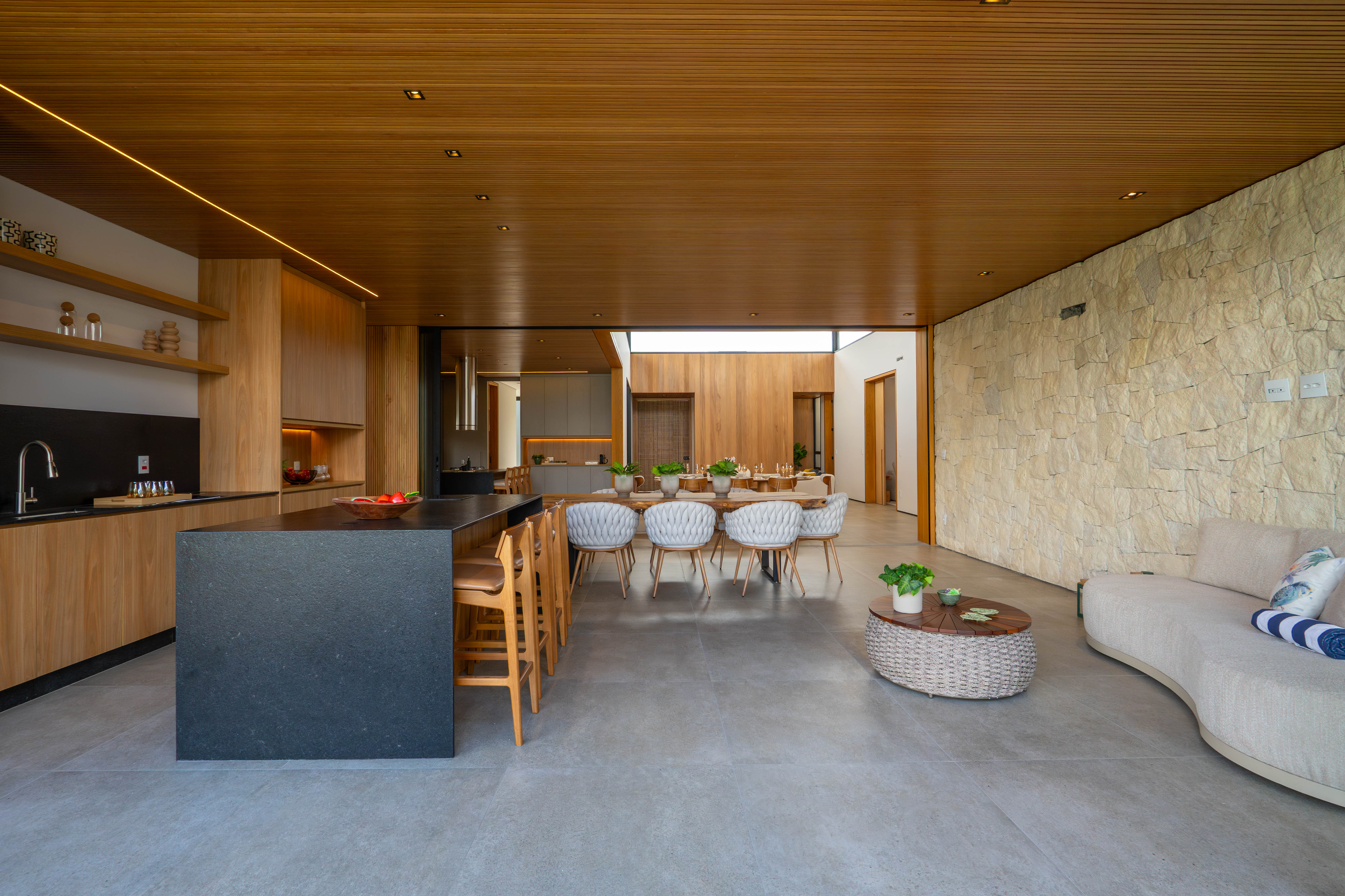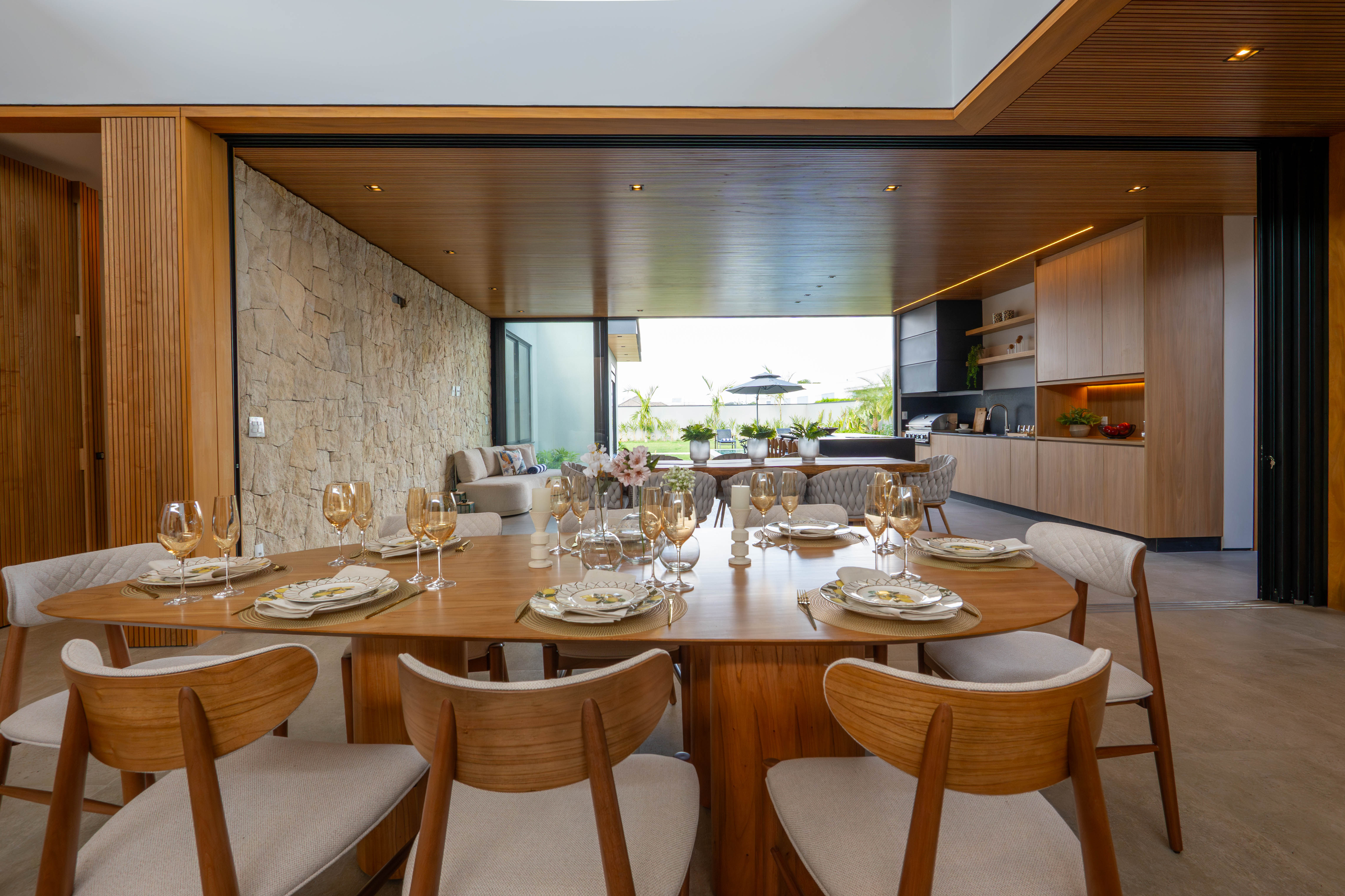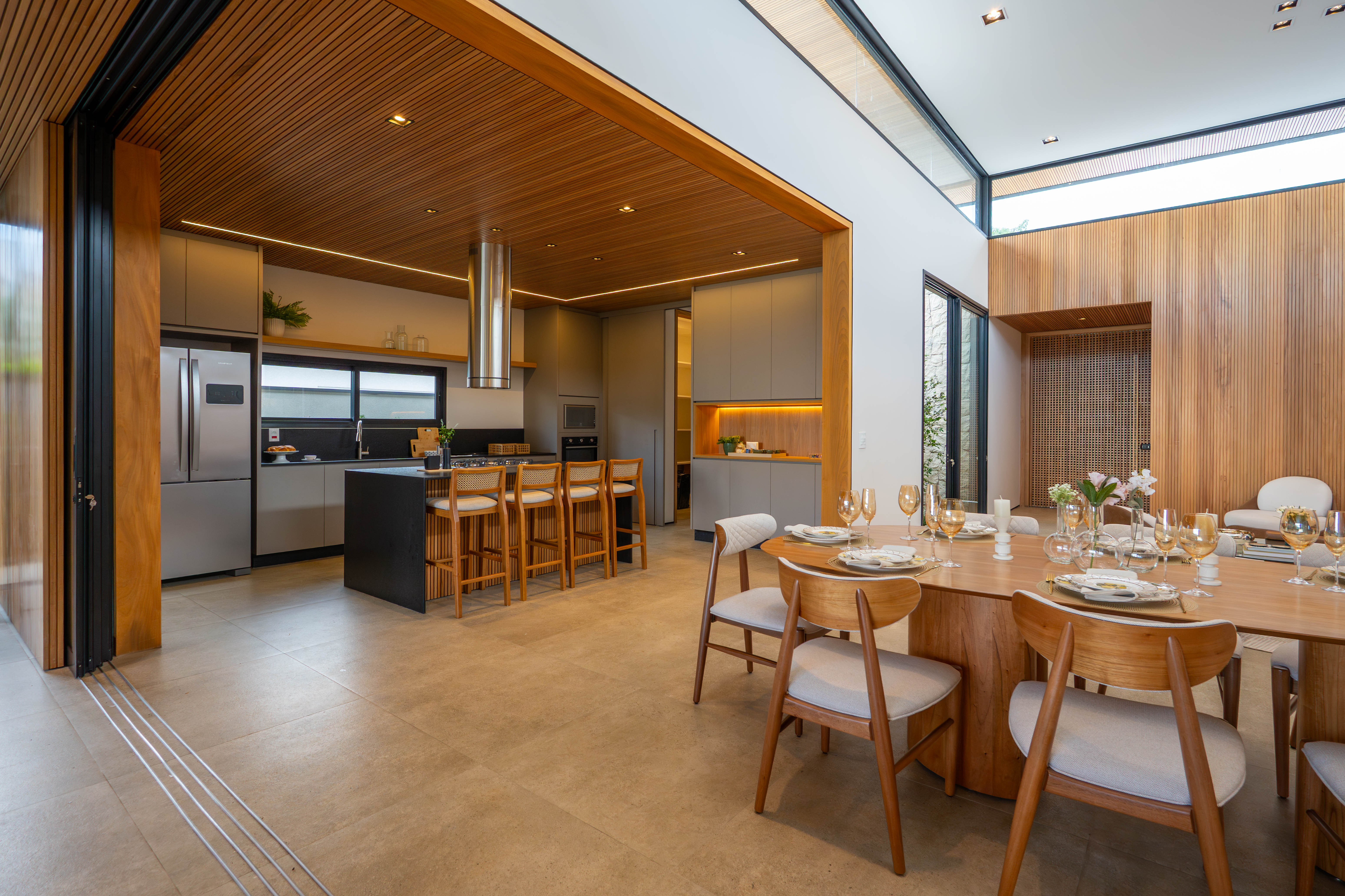 - Gourmet amplo e confortável, integrado com cozinha, sala de jantar e sala de estar