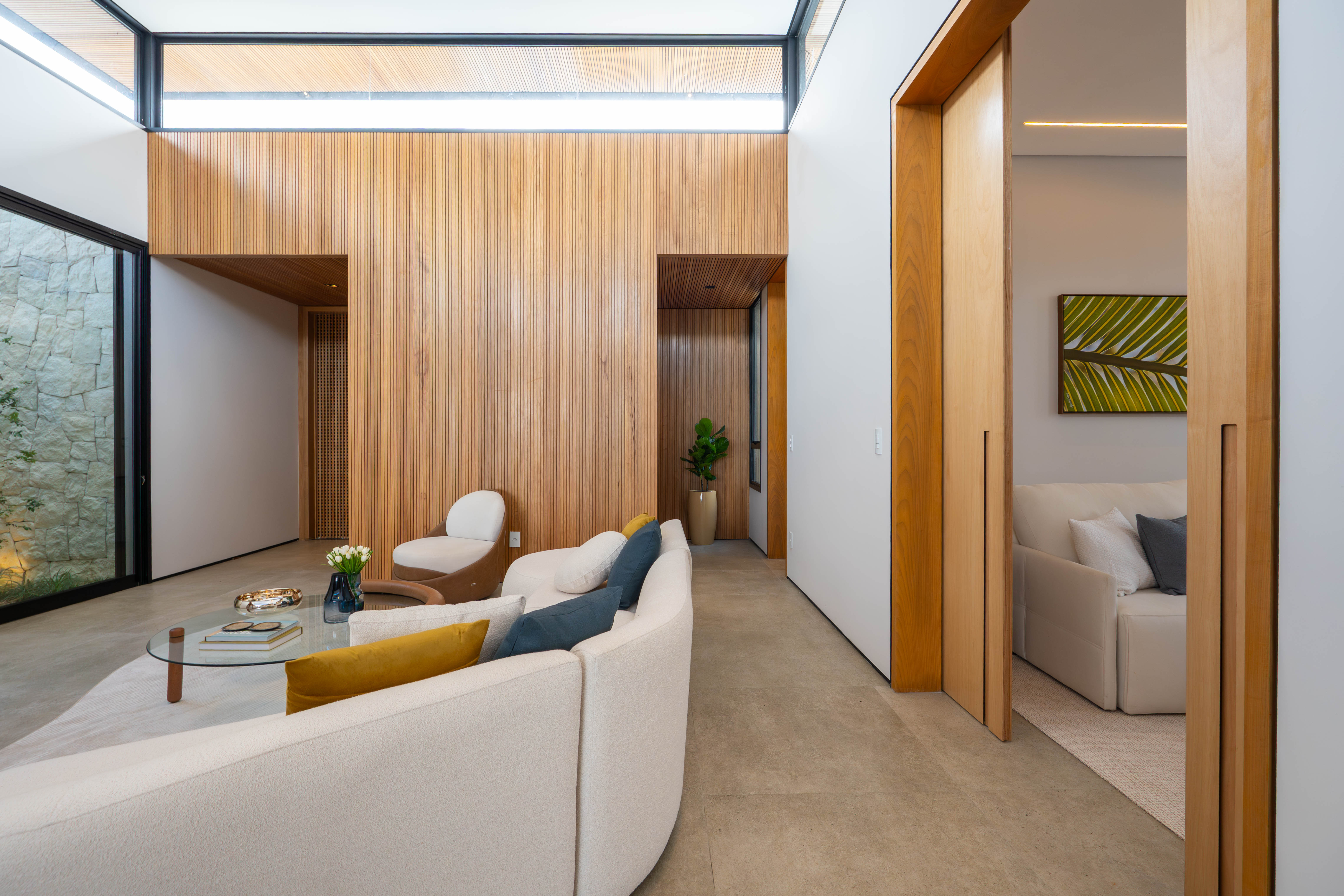 Descubra uma obra-prima da arquitetura contemporânea, uma casa de 410m² que combina funcionalidade e funcionalidade. Com uma fachada impressionante em tijolos de demolição originais e um painel de muxarabi em madeira Tauari, esta residência é um verdadeiro refúgio de conforto e estilo.