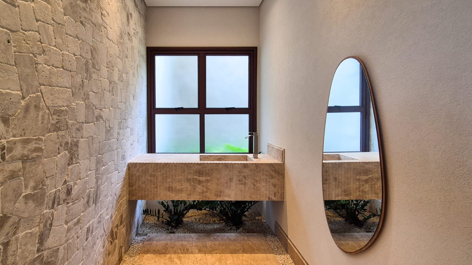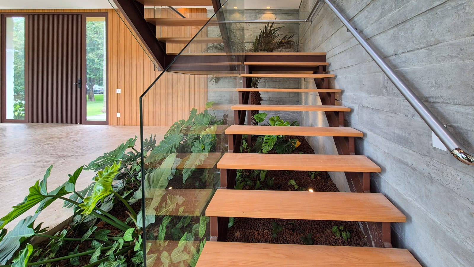 5 suítes no pavimento superior, todas avançadas e com vista permanente para o horizonte
