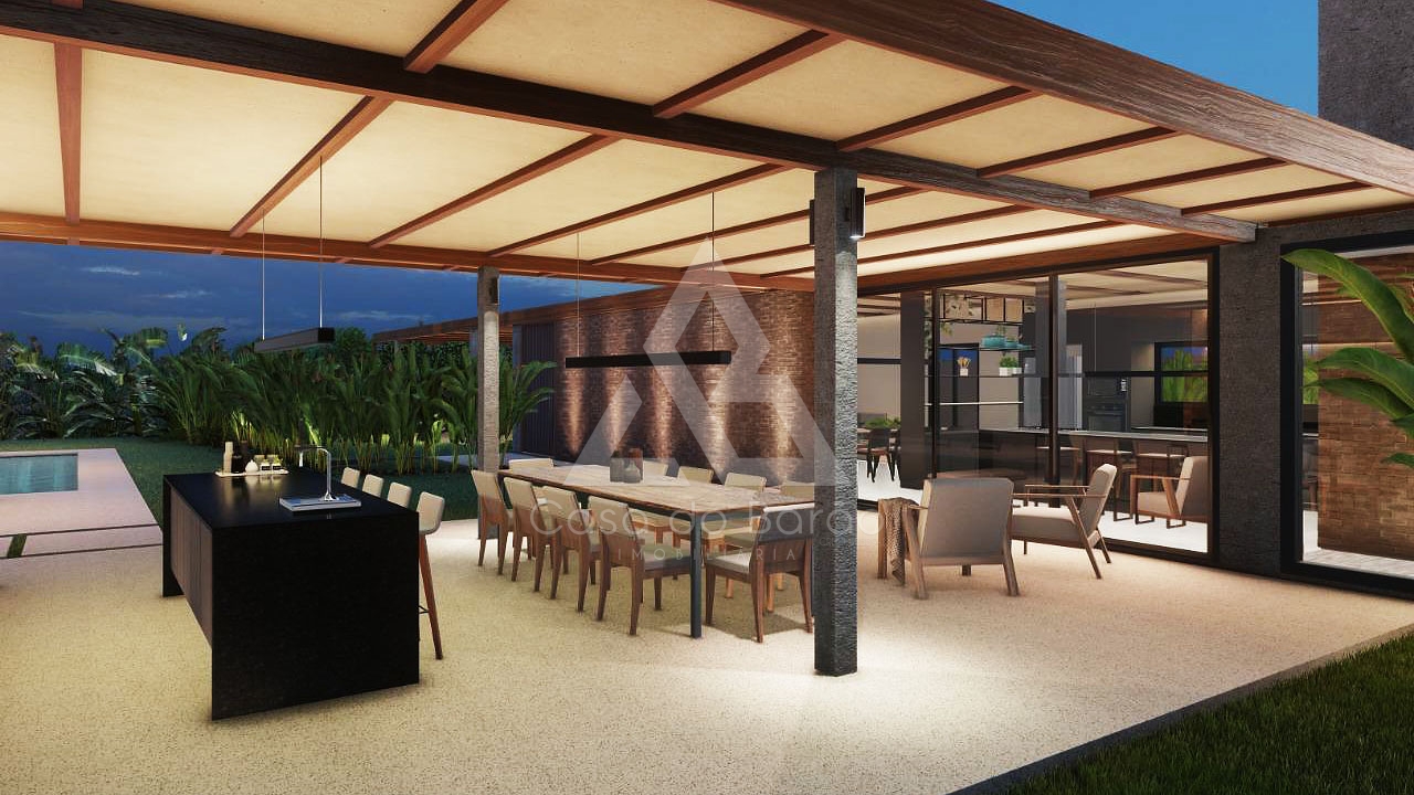 Com projeto diferenciado e cheio de estilo, esta casa tropical contemporânea conta com sala 2 ambientes integrada à cozinha, lavabo, 4 suítes, sendo 1 máster Sr. e Sra., jardim interno, um lindo espaço gourmet, piscina iluminada e um paisagismo tropical que abraça toda a casa!