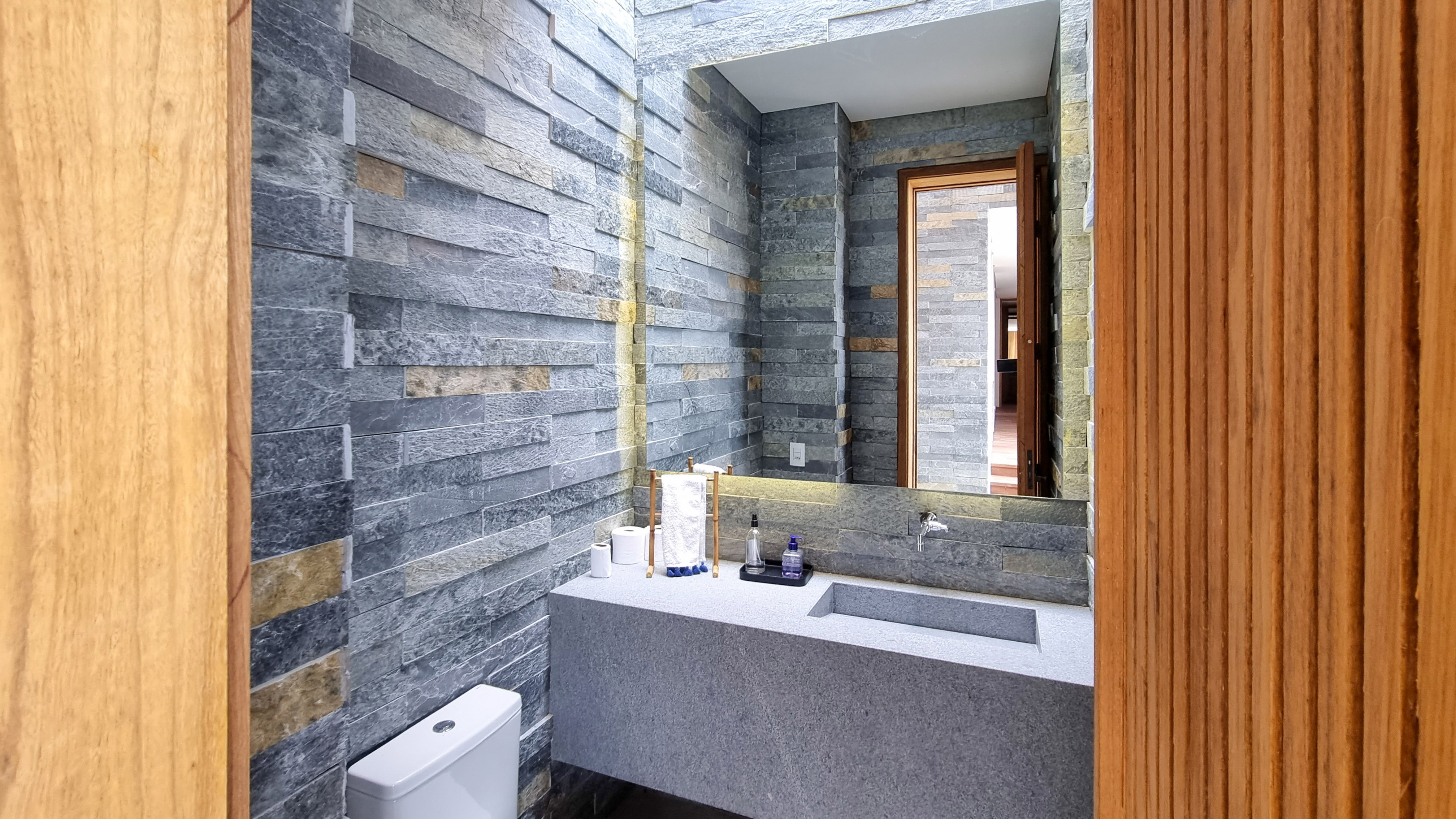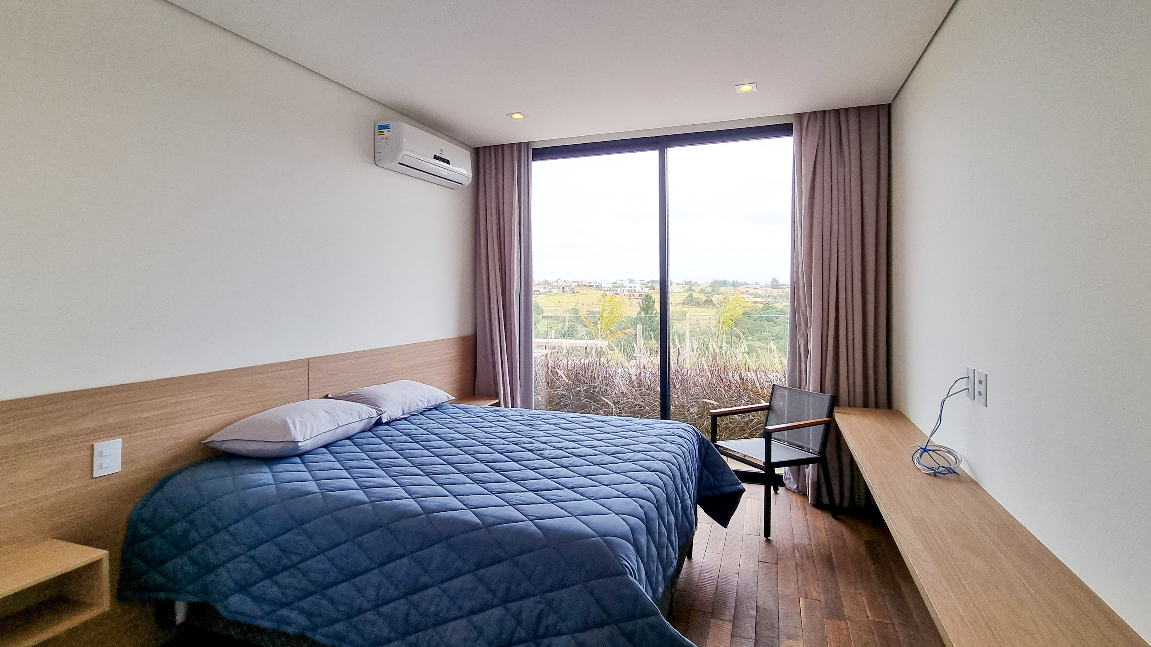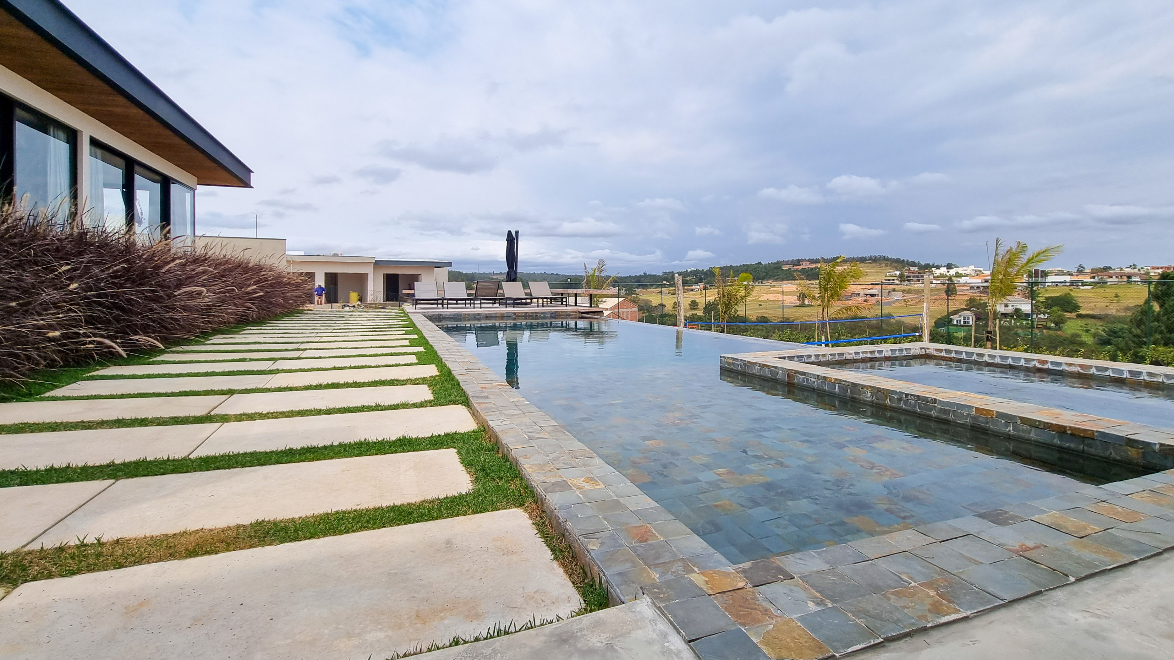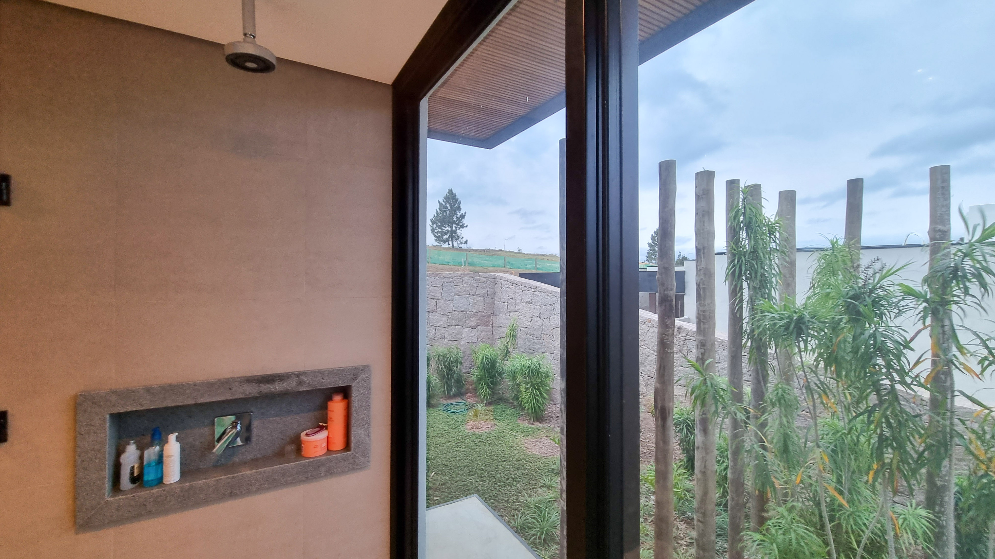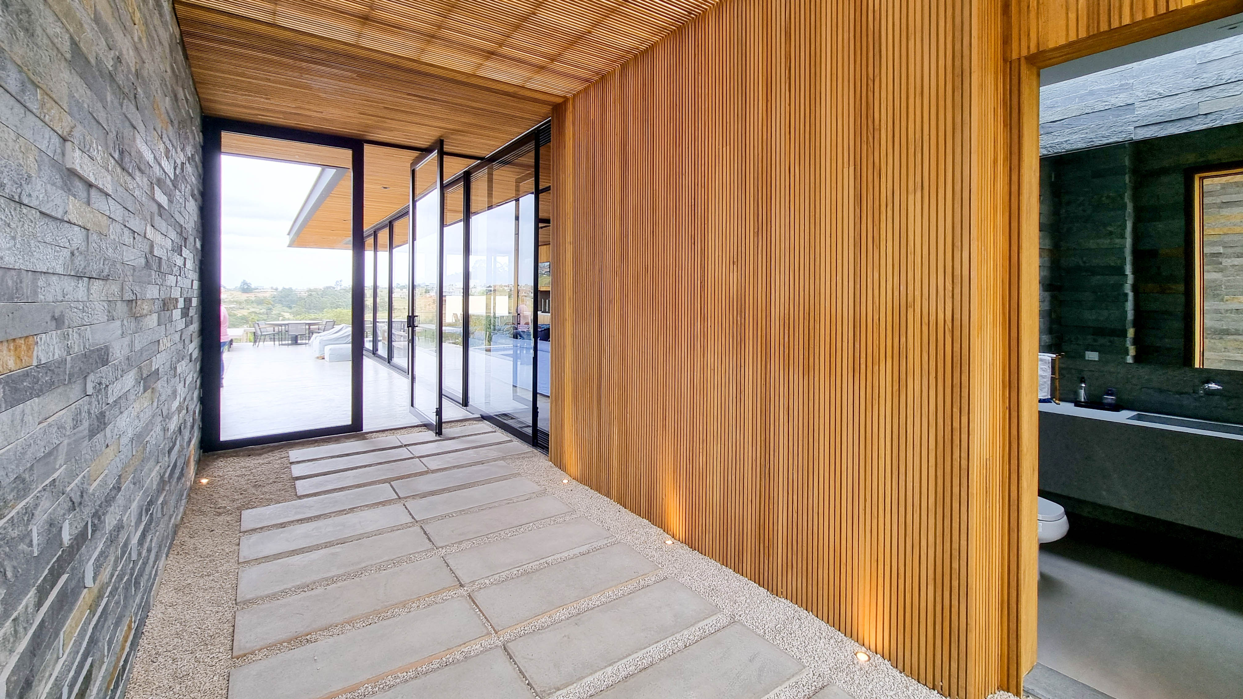 Um projeto onde a integração vai além de privilegiar a comunhão dos ambientes. Ele também entrega belas vistas de vários pontos devido à quantidade de vidros, outros elementos contemporâneos e minimalistas, como madeira, pedra e estrutura metálica, que imprimem modernidade e fazem com que tudo se conecte perfeitamente nesta casa.