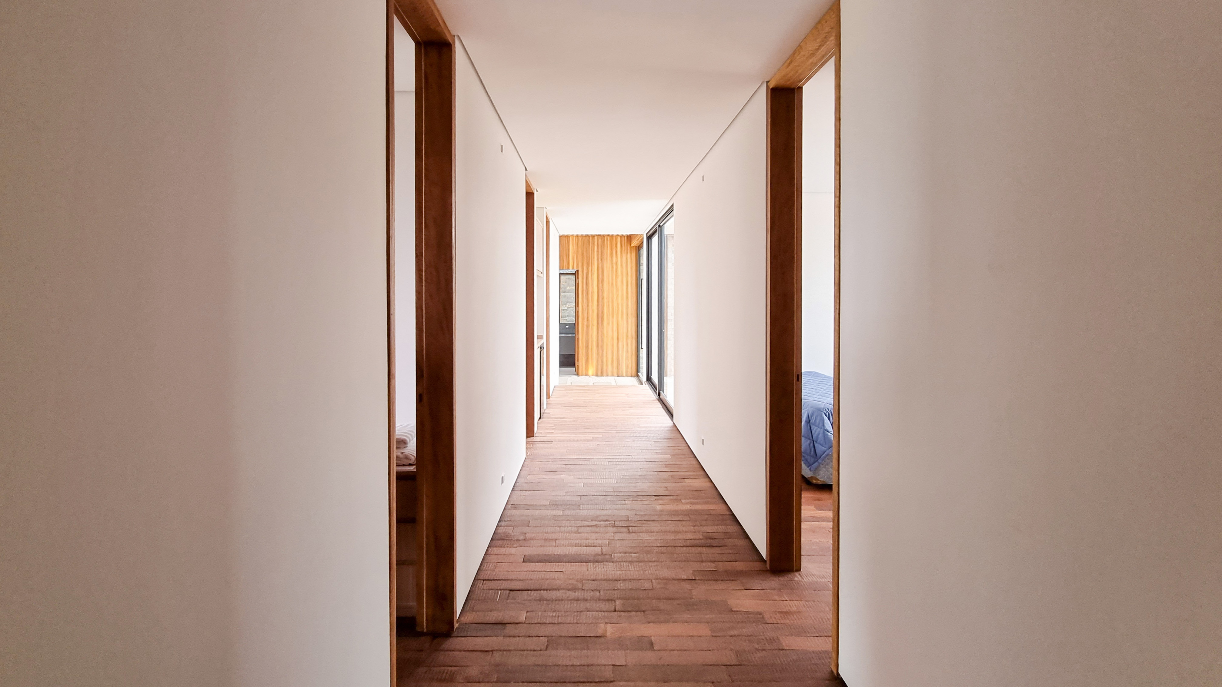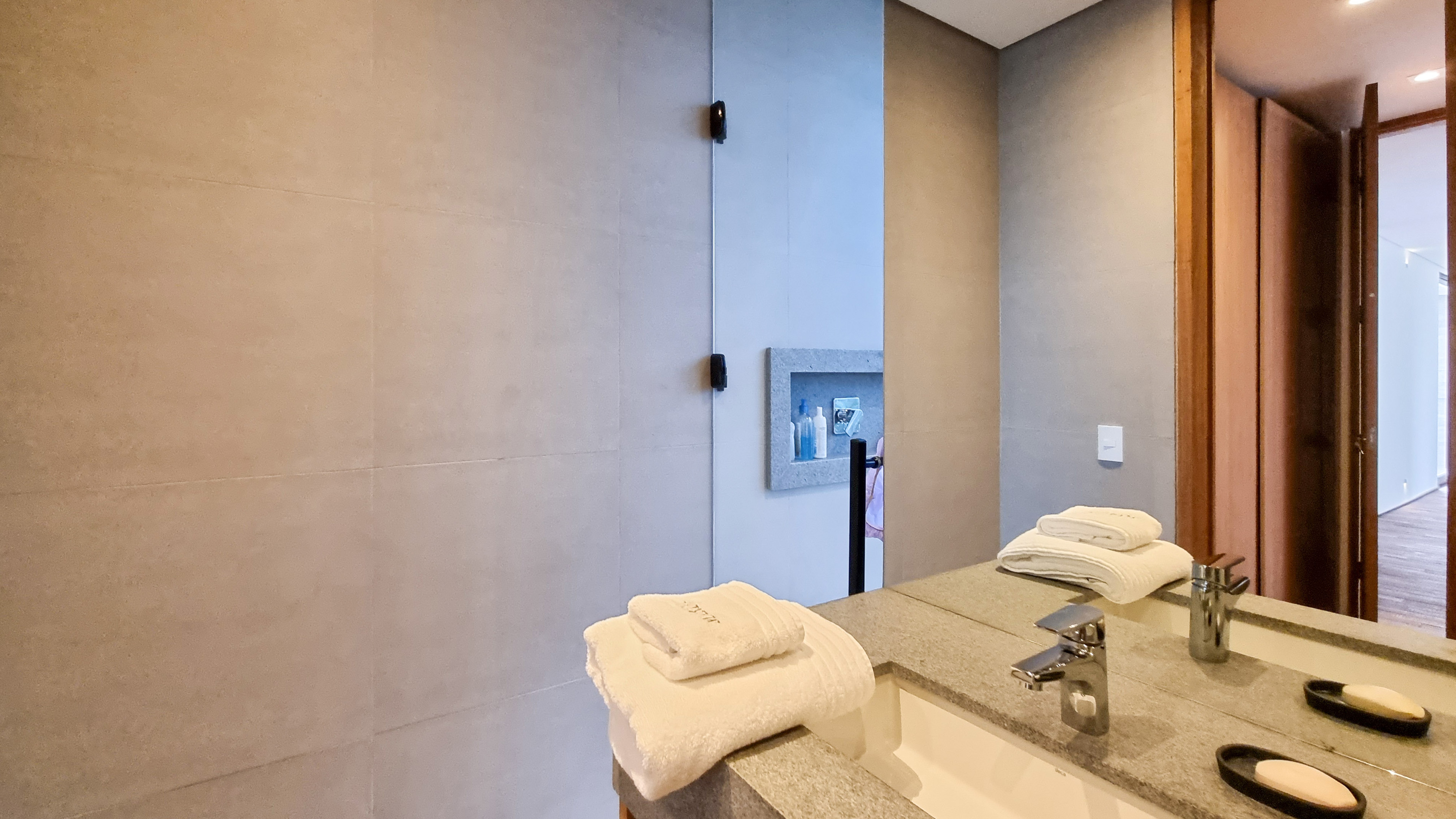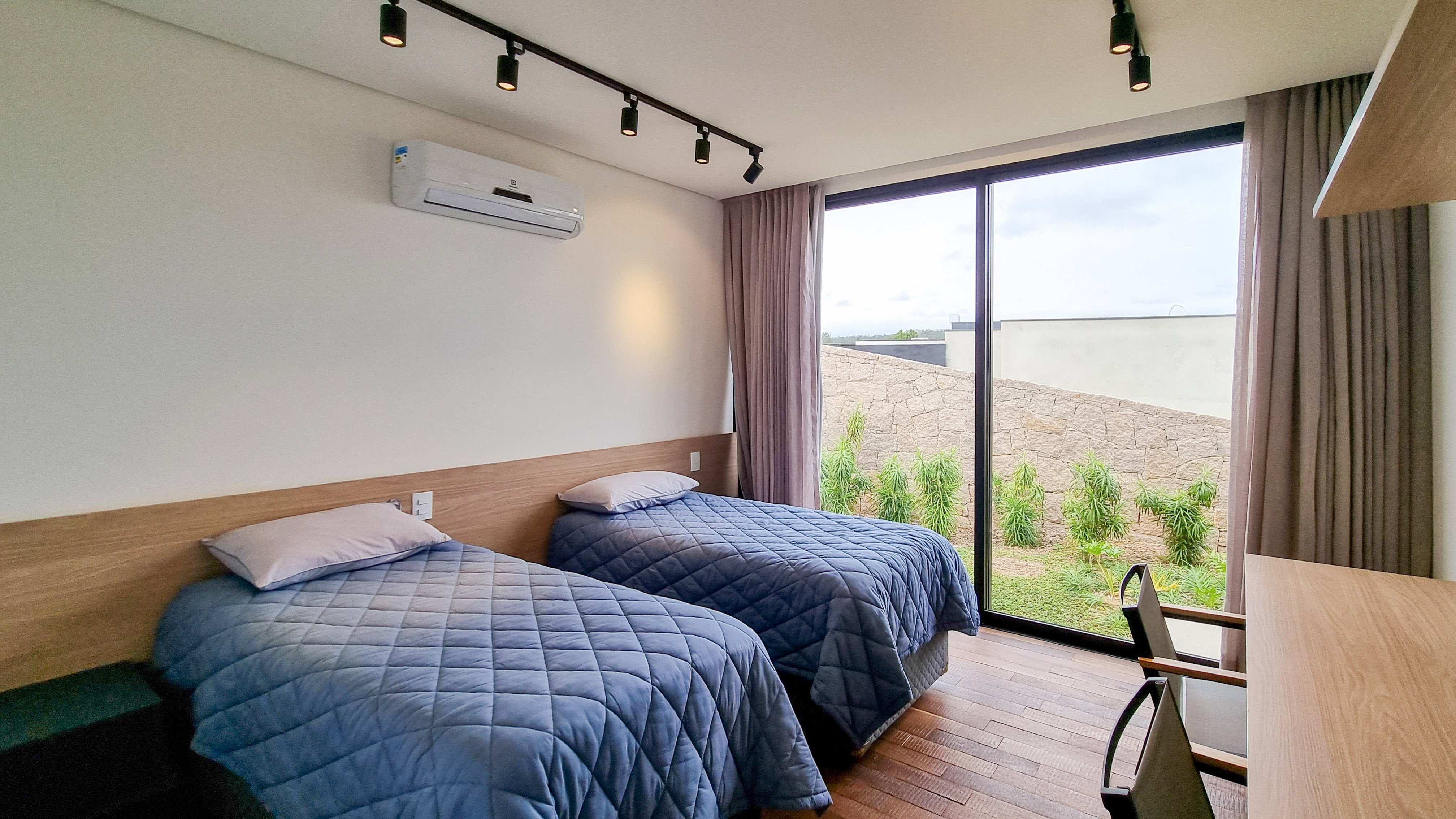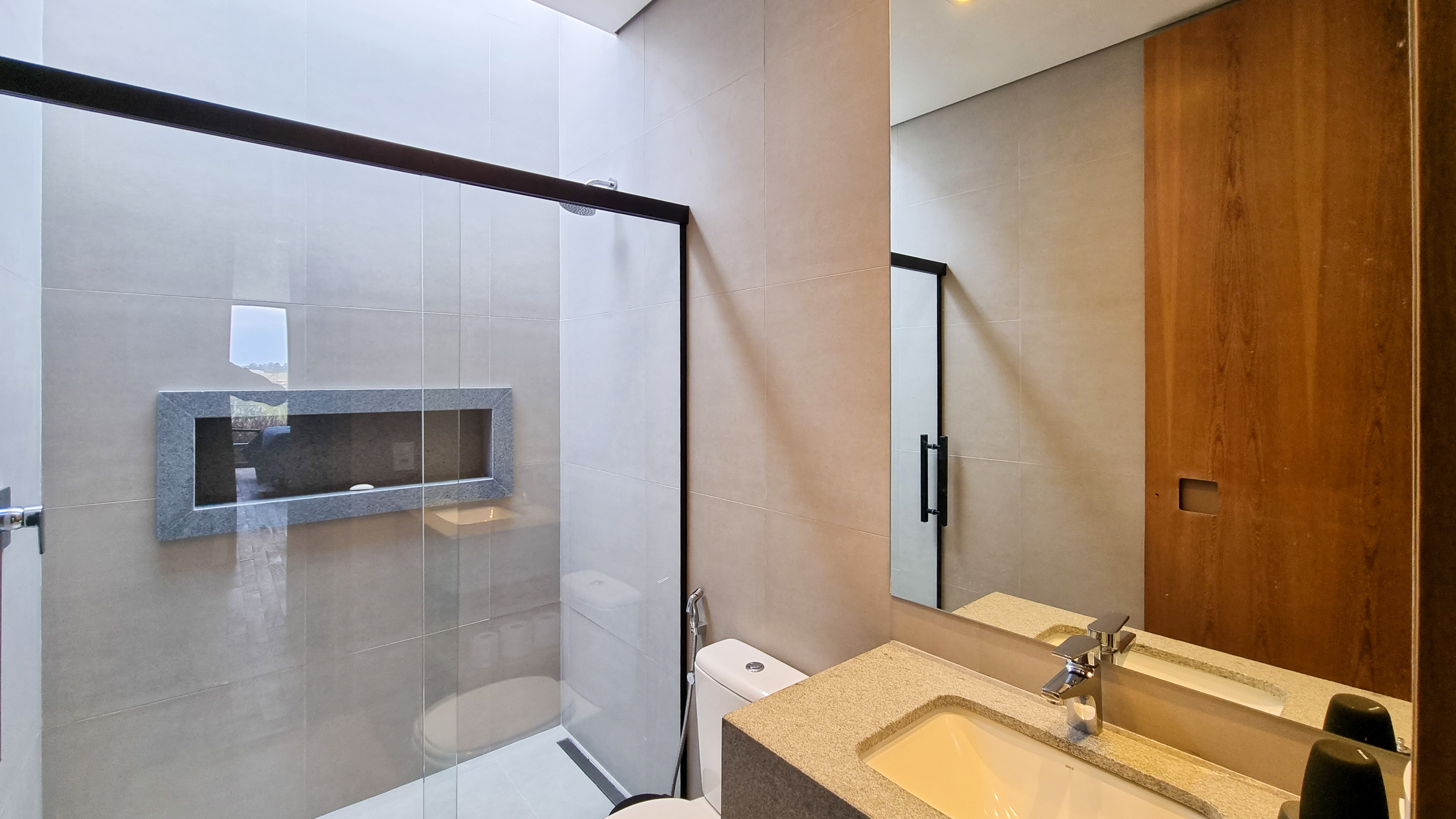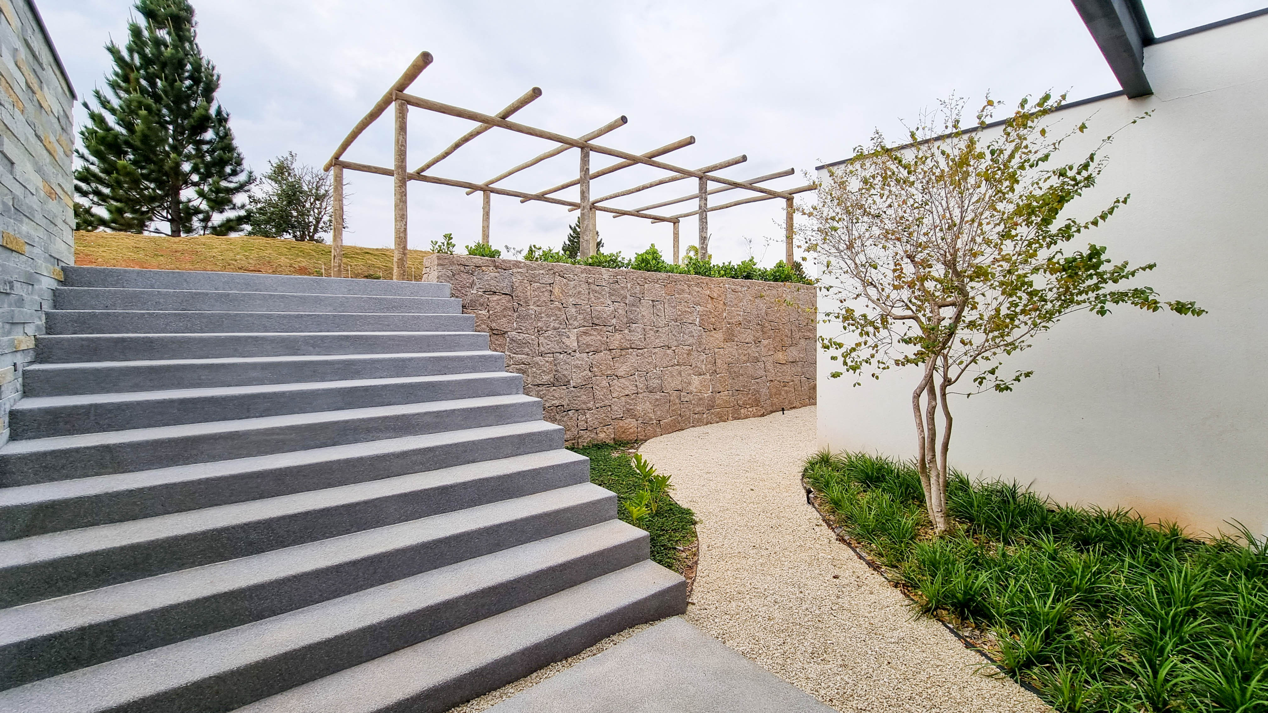 Um projeto onde a integração vai além de privilegiar a comunhão dos ambientes. Ele também entrega belas vistas de vários pontos devido à quantidade de vidros, outros elementos contemporâneos e minimalistas, como madeira, pedra e estrutura metálica, que imprimem modernidade e fazem com que tudo se conecte perfeitamente nesta casa.