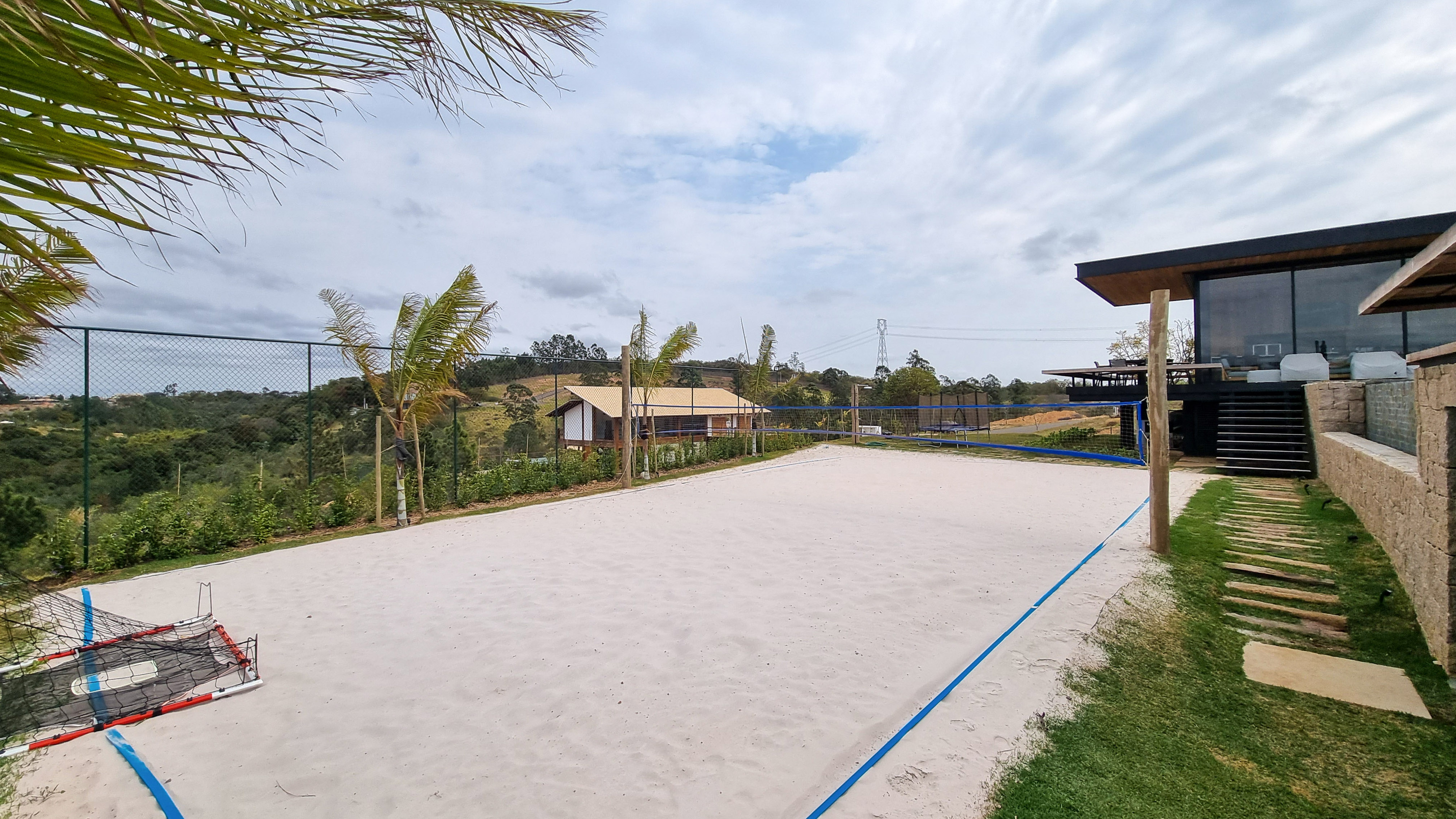 O imóvel conta com 6 suítes, salas amplas, lavabo, cozinha muito bem equipada com eletros e armários planejados, lareira externa, espaço gourmet com churrasqueira, piscina com borda infinita, sauna úmida, um paisagismo exuberante, ampla garagem para vários carros e uma quadra privativa de tênis de praia, o que torna ainda mais exclusivo este imóvel.